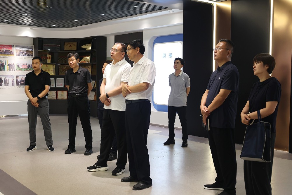 2024年7月21日,邯鄲市農業農村局黨組書記、局長王常智一行蒞臨禾下土調研。調研組一行參觀了綜合展廳,聽取企業總經理崔伏喜對甘薯新品種選育、脫毒組培、基地規模的情況介紹,了解了禾下土在脫毒甘薯種業領域的創新發展成果。磁縣農業農村局黨組書記王國棟、副局長靳合成、黨委委員武鵬飛陪同調研。