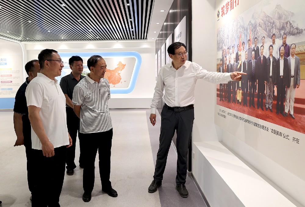 2024年5月22日,邯鄲市農業廣播電視學校校長王順紅一行到禾下土調研“農民田間學校”建設情況,磁縣農業農村局局長王奕翔、科技教育中心主任魏振峰、磁縣農廣校校長陳會玲,邯鄲市禾下土種業有限公司副總經理崔志科陪同調研。調研組一行實地查看了綜合展廳、會議室、多功能廳等核心設施建設,詳細了解田間學校教學環境、食宿條件和實踐基地。王順紅對禾下土田間學校的建設工作予以肯定,并表示要進一步優化學校工作細節,把田間學校規劃好、建設好,讓農民在干中學,學中干,實現農學結合。