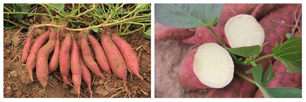 該品種結(jié)薯早、前期膨大塊,可較常規(guī)品種提早1個(gè)月左右收獲上市,薯塊商品性好,可使種植效益顯著提高。據(jù)薯農(nóng)、市場一致反映:秦薯5號(hào)好吃、好賣,熟食品質(zhì)優(yōu)良,是理想的高效食用"市場薯",也可作為"迷你紅薯"或淀粉兼用型品種利用。