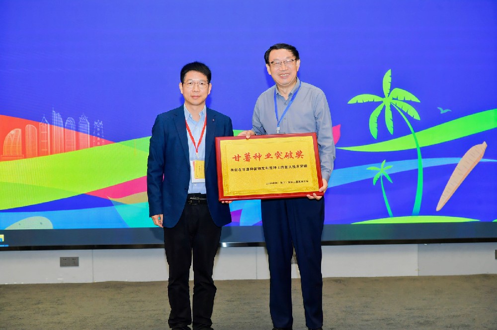 2024年12月6日,中國(guó)(海口)國(guó)際三薯發(fā)展大會(huì)在海南海口國(guó)際會(huì)展工場(chǎng)盛大開幕。中國(guó)甘薯首席科學(xué)家李強(qiáng)、馬鈴薯首席科學(xué)家李廣存、木薯原首席科學(xué)家李開綿等國(guó)內(nèi)外三薯行業(yè)領(lǐng)域權(quán)威專家、優(yōu)秀企業(yè)代表齊聚海口,創(chuàng)新三薯產(chǎn)業(yè)鏈、保障糧食供應(yīng)鏈。邯鄲市禾下土種業(yè)有限公司作為國(guó)家種業(yè)陣型企業(yè)受邀出席會(huì)議,并作《引領(lǐng)甘薯種業(yè)創(chuàng)新,推動(dòng)甘薯產(chǎn)業(yè)高質(zhì)量發(fā)展》主題報(bào)告。在大會(huì)上,為表彰禾下土在甘薯種苗研發(fā)和育種上的重大技術(shù)突破,禾下土種業(yè)被授予“甘薯種業(yè)突破獎(jiǎng)”。江蘇徐淮地區(qū)徐州市農(nóng)科所副所長(zhǎng)、甘薯副首席科學(xué)家曹清河研究員為崔伏喜總經(jīng)理頒授獎(jiǎng)牌。禾下土將繼續(xù)加強(qiáng)甘薯種苗研發(fā)和育種上的資金和人才投入,積極發(fā)揮甘薯種業(yè)核心優(yōu)勢(shì),引領(lǐng)甘薯種業(yè)創(chuàng)新,推動(dòng)中國(guó)甘薯產(chǎn)業(yè)高質(zhì)量發(fā)展。