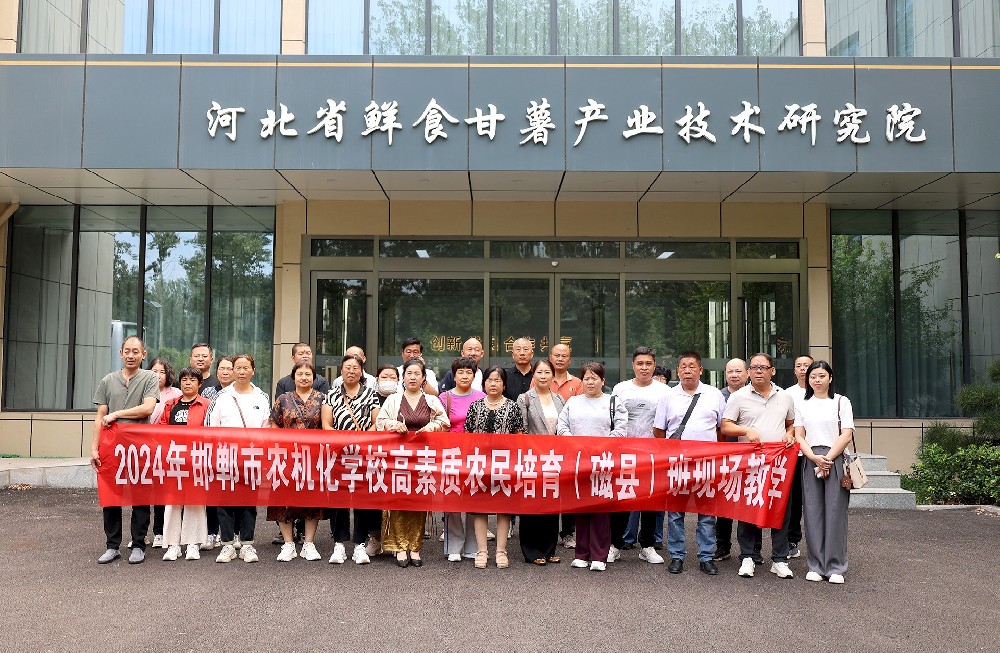 為拓展學(xué)員視野,提升學(xué)員綜合素質(zhì),邯鄲市農(nóng)業(yè)機(jī)械化學(xué)校組織“高素質(zhì)農(nóng)民(磁縣)班”學(xué)員約30余人到禾下土參觀學(xué)習(xí)。邯鄲市禾下土種業(yè)有限公司副總經(jīng)理鄒義杰帶領(lǐng)學(xué)員參觀了綜合展廳、產(chǎn)品展廳,深入了解禾下土在新品種選育、組培苗擴(kuò)繁、種苗基地建設(shè)、產(chǎn)業(yè)化進(jìn)展等創(chuàng)新發(fā)展情況。在甘薯種苗繁育基地,鄒義杰圍繞澆水、施肥、控旺等栽培技術(shù)要點(diǎn)展開現(xiàn)場培訓(xùn),為學(xué)員開展甘薯種植提供了有益經(jīng)驗(yàn)。
