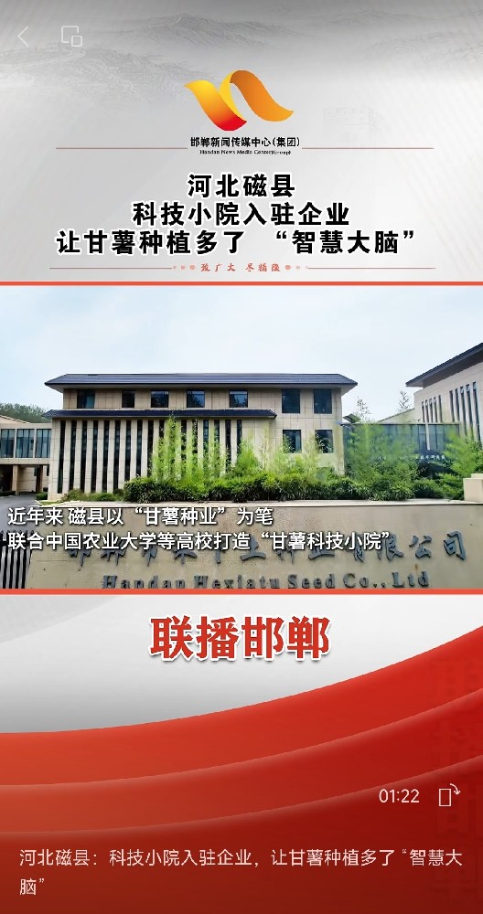 2025年8月13日,繼磁縣融媒體中心發布《活力磁縣│科技小院入駐企業!甘薯種植裝上“科技引擎”》后,邯鄲新聞傳媒中心發布《河北磁縣:科技小院入駐企業,讓甘薯種植多了“智慧大腦”》的視頻。2024年,磁縣以“甘薯種業”為核心抓手,依托禾下土種業,聯合高校建立“甘薯科技小院”,構建起甘薯種業科技創新與成果轉化一體化綜合平臺,通過技術研究、新品種選育、良種繁育、人才培養與社會服務等方式,全方位賦能甘薯產業發展,為鄉村全面振興注入強勁動力。