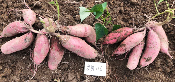 龍薯116龍薯116(原系號(hào)11-6)是福建省龍巖市農(nóng)業(yè)科學(xué)研究所于2012年以龍薯9號(hào)放任授粉的后代中育成。該品種具有綜合性狀好,薯干與淀粉產(chǎn)量高,食味品質(zhì)粉、香、甜,中抗甘薯蔓割病,是一個(gè)理想的食飼兼用型品種。特征特性:短蔓株型半直立,單株分枝數(shù)較多,成葉心形帶齒,葉片大小中等,頂葉、成葉、莖、葉柄、柄基、葉主脈、葉側(cè)脈、脈基色均為綠色;蔓粗中等;單株結(jié)薯5-8條,薯形長(zhǎng)紡,結(jié)薯集中,薯塊大小較均勻,且光滑美觀。薯皮紅色,薯肉淡黃色。干物率33.66%,比對(duì)照"金山57"(下同)高7.65個(gè)百分點(diǎn);淀粉率22.92%,比對(duì)照高6.65個(gè)百分點(diǎn);食味評(píng)分83.75 ,比對(duì)照高3.5個(gè)百分點(diǎn);外觀(薯形)評(píng)分83.02 ,比對(duì)照高3.02個(gè)百分點(diǎn)。中抗甘薯蔓割病,耐肥,較耐干旱。發(fā)芽早,長(zhǎng)苗較快。產(chǎn)量表現(xiàn):2017年與2018年...
